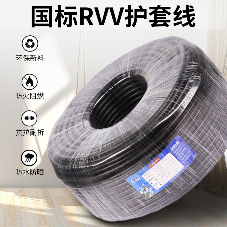 Pure copper core wire soft wire GB cable 2 core 3 core 4 core RVV sheathed wire household monitoring power cord foot meter