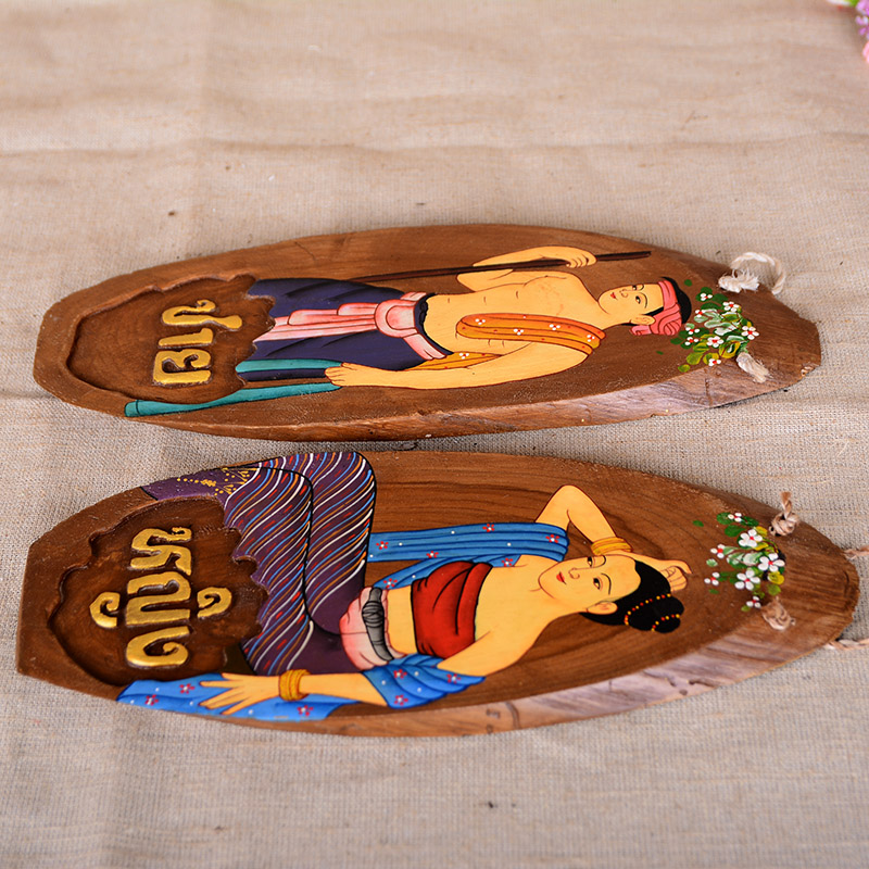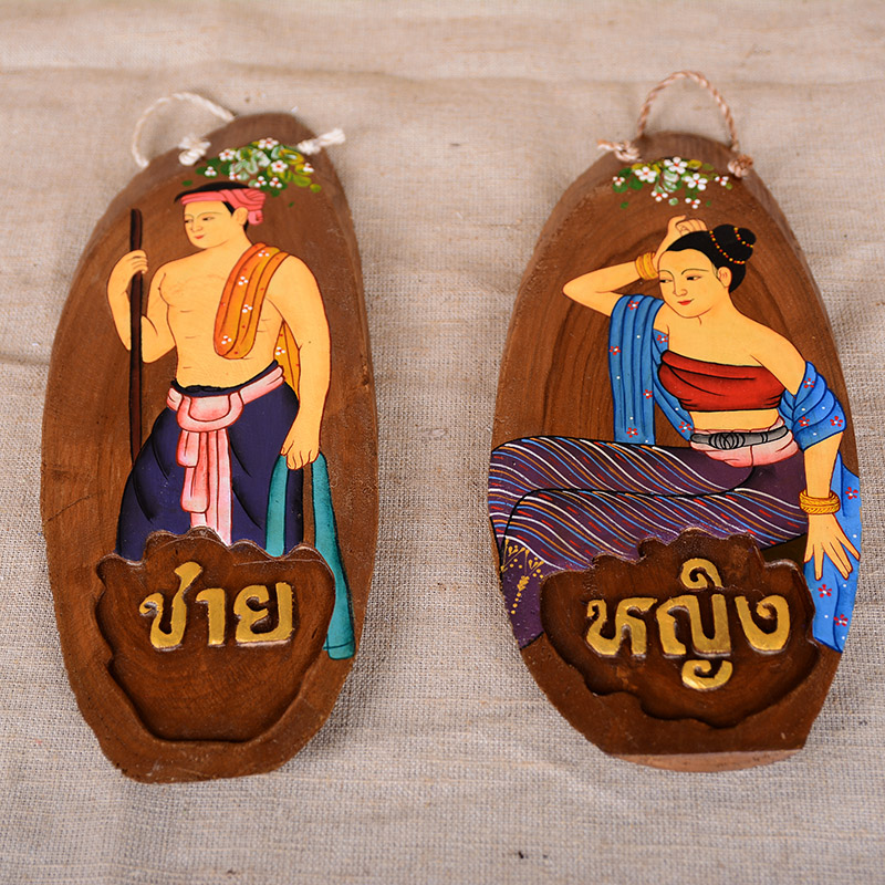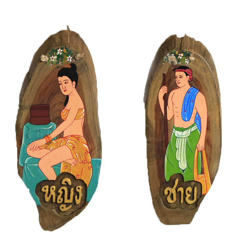Thai craft gift pendulum decoration teak sculpted hand-painted original eco-toilet logo Southeast Asian hotel clubhouse decoration hanging decoration