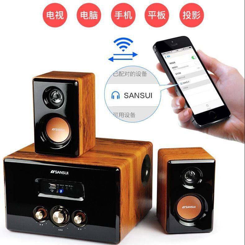 sansui landscape 62D desktop computer speaker 2 1 audio Bluetooth heavy subwoofer Home mobile phone listening to song wood
