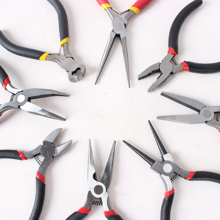 Toothed flat mouth pliers Small wire pliers toothed curved mouth pliers Round mouth pliers toothed pointed mouth pliers Oblique mouth wire cutting pliers Environmental protection Oxford pack color handle 4 5 inch toothless pointed mouth pliers