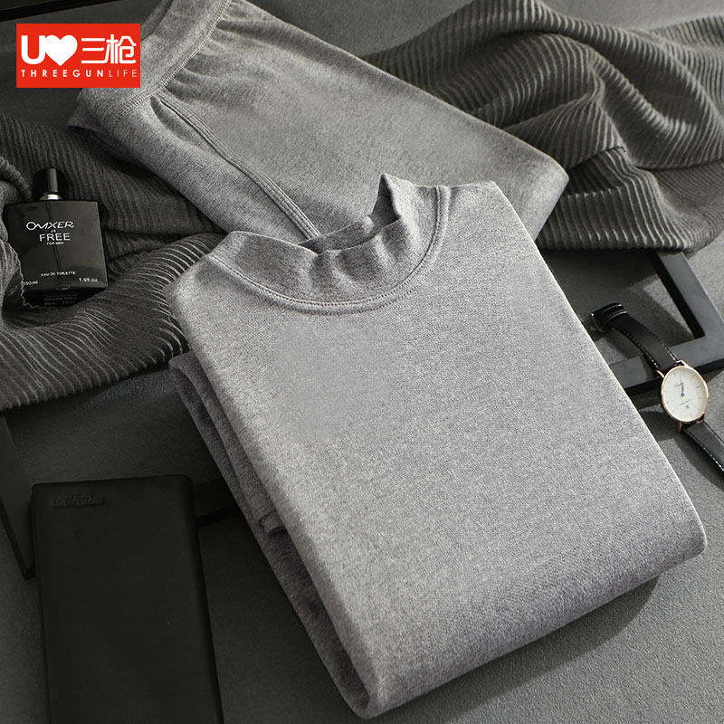 Three-gun fever coat men's pure cotton autumn and winter medium thick and half high collar women's undershirt full cotton autumn clothes sanitary pants long sleeve suit