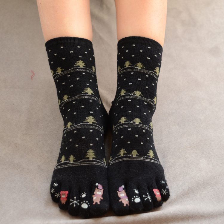 Autumn Winter Wool Thickening Warm Five Finger Socks Woman Foreign Trade Day Single Point Gluon Cute Embroidered Pure Cotton Middle Cylinder Toe Socks-Taobao