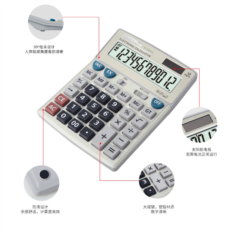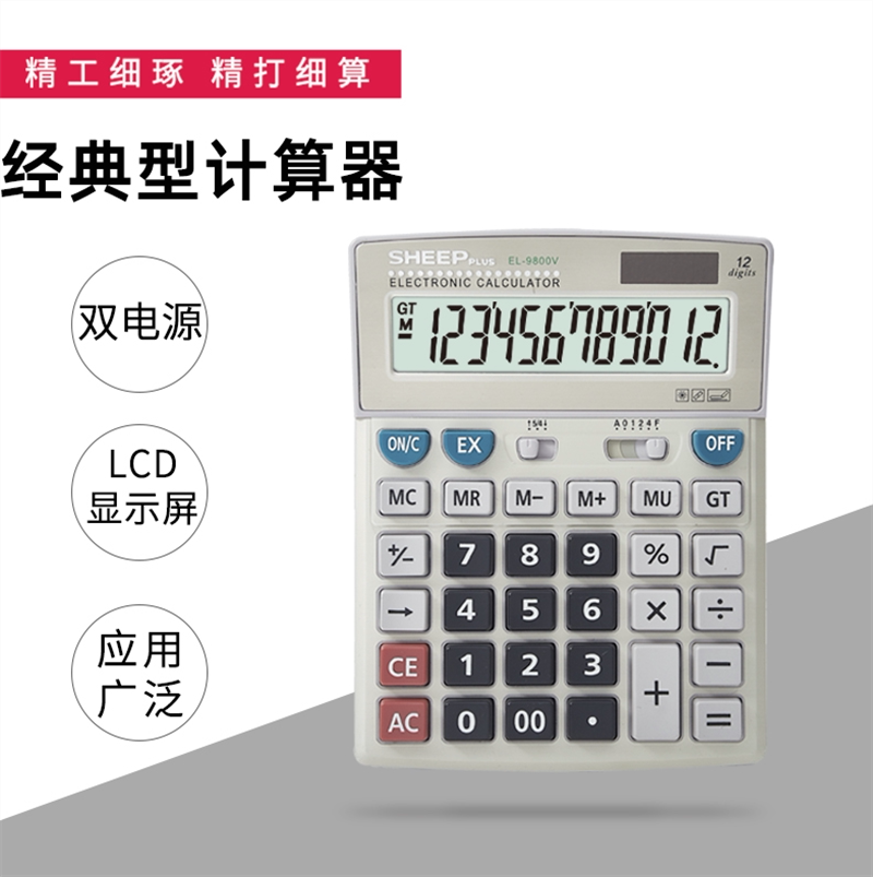 9800 Office Finance Multifunction Calculator Computer Keys Solar Dual Power Computer Big-screen