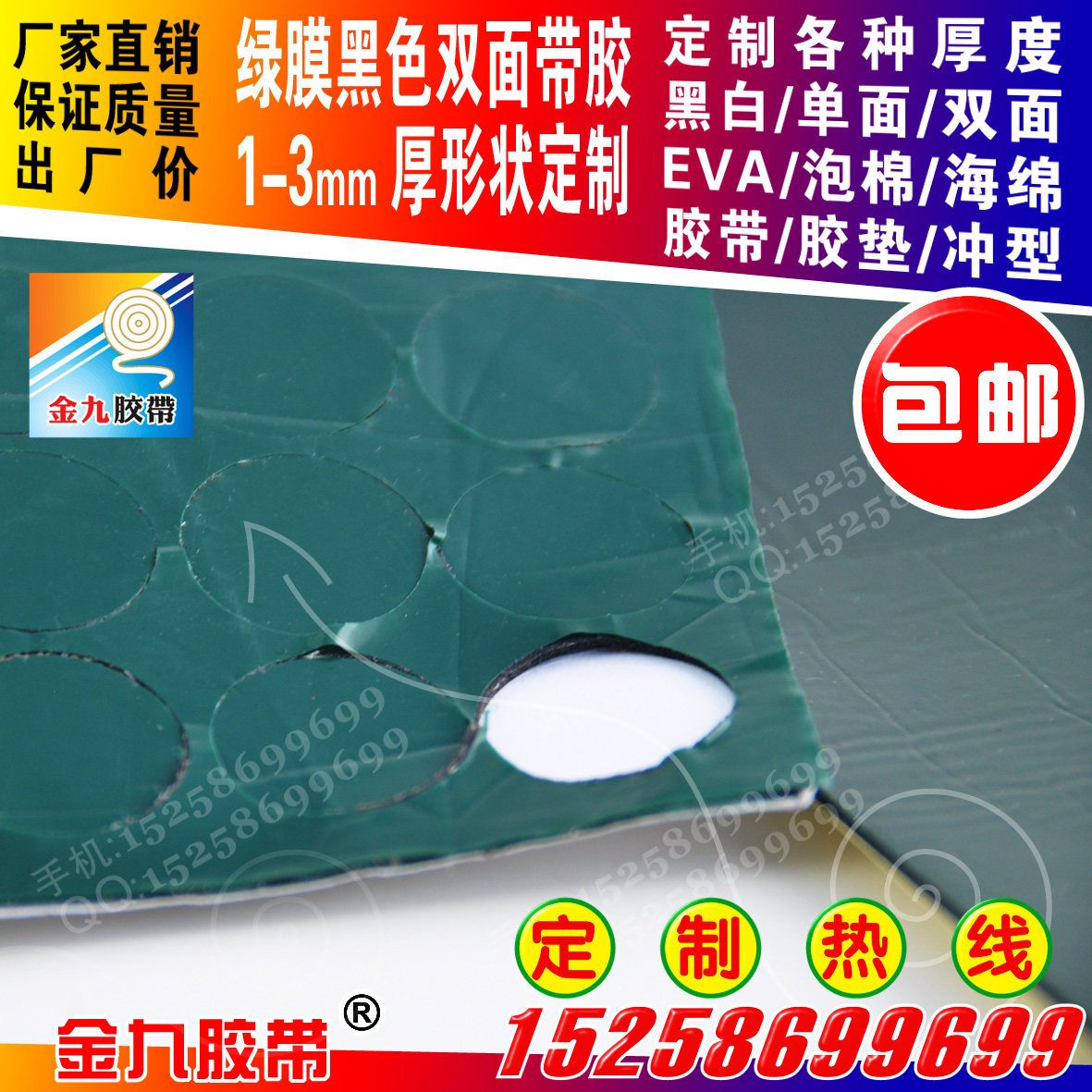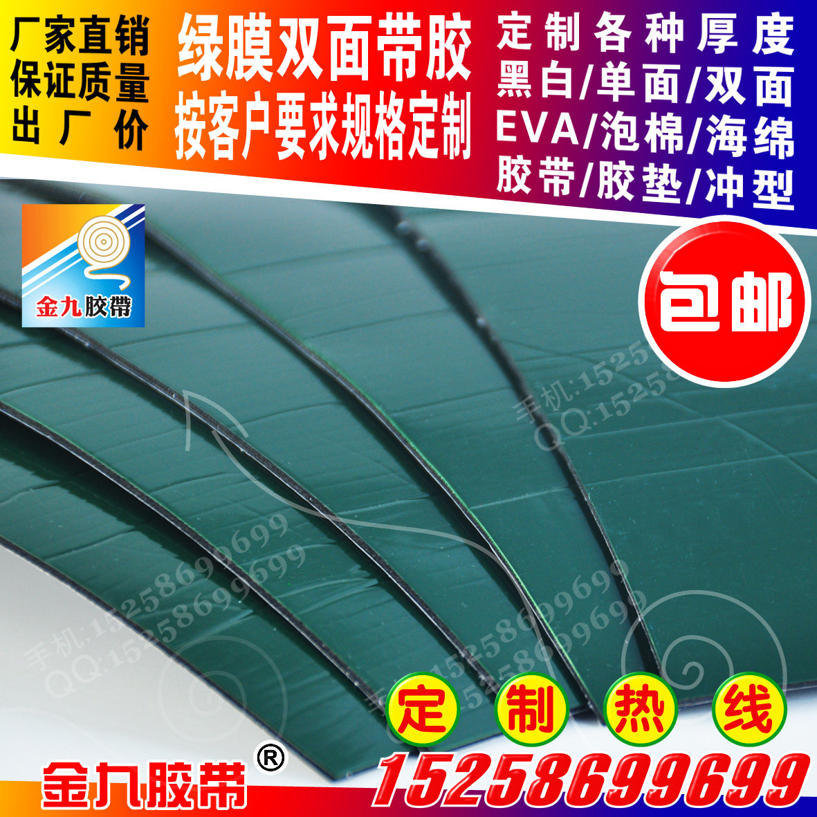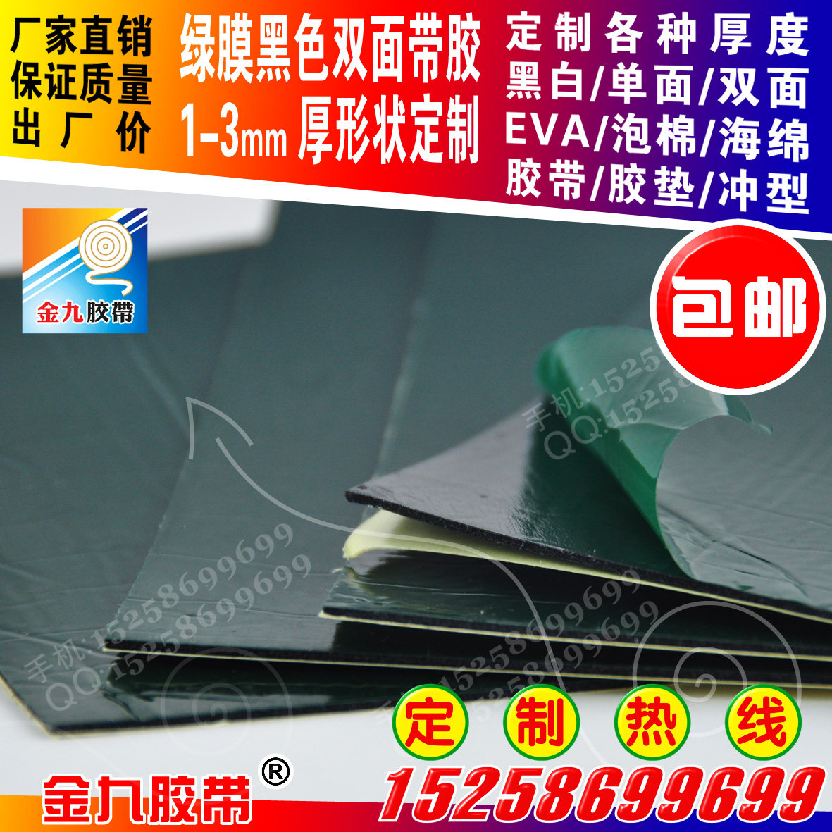 Green film high temperature resistant oil rubber PE base 1-3 mm thick single sided with glue processing punching type adhesive tape plastic mat special stick