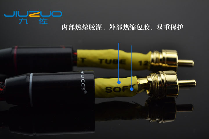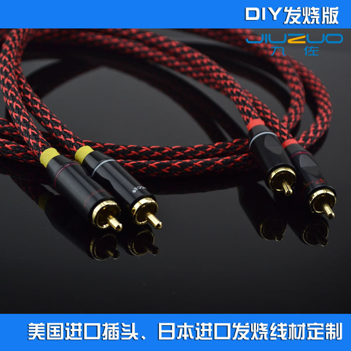 Hair Burning Grade Pure Copper Canon Resistant Beauty Speaker Signal Sound Red White Audio Line 2 Pairs 2 Grounds 2RCA Double Lotus RCA Head
