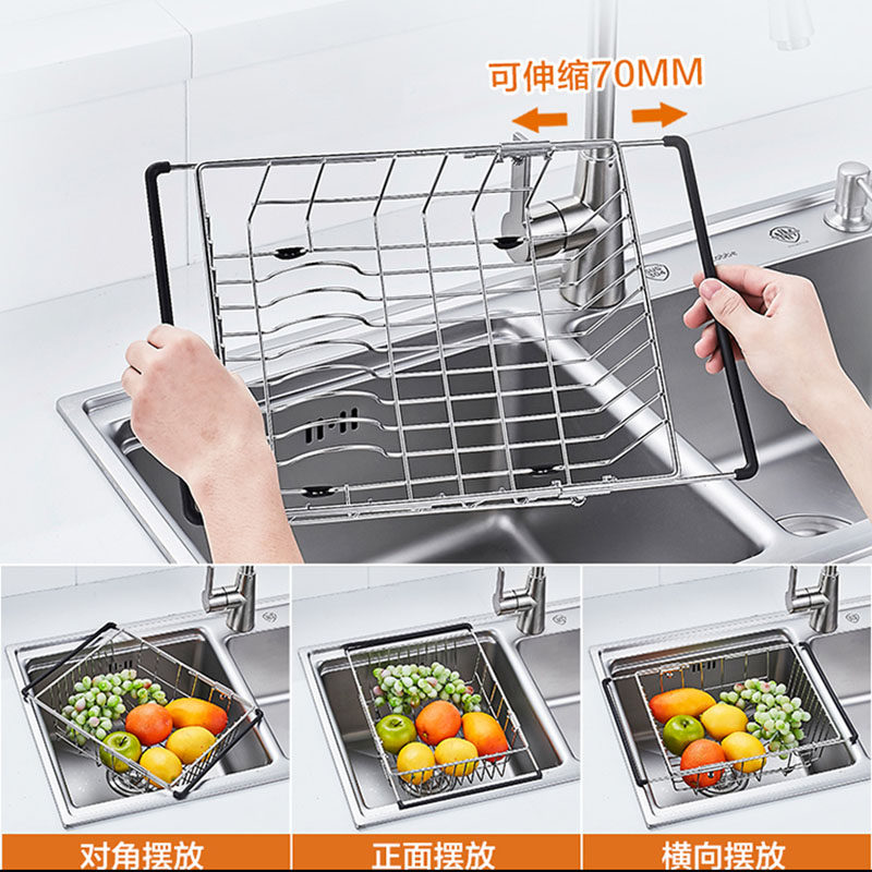 Cabe kitchen wash basin sink drain basket Stainless steel pool dishes drain rack filter basket retractable
