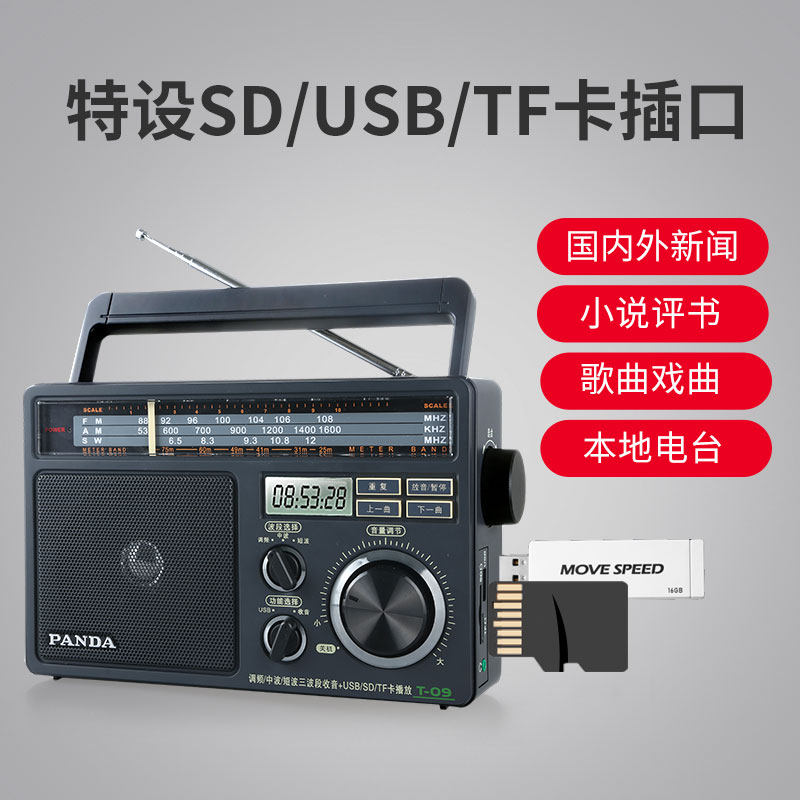 PANDA PANDA T-09 Full band radio Old man portable plug-in card song card radio Listening machine player Desktop semiconductor radio Vintage radio Retro