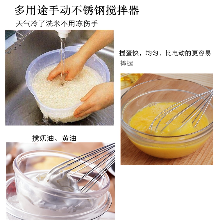 Multi-purpose stainless steel manual egg mixer, rice washer, dough mixer, cake cream, butter mixer