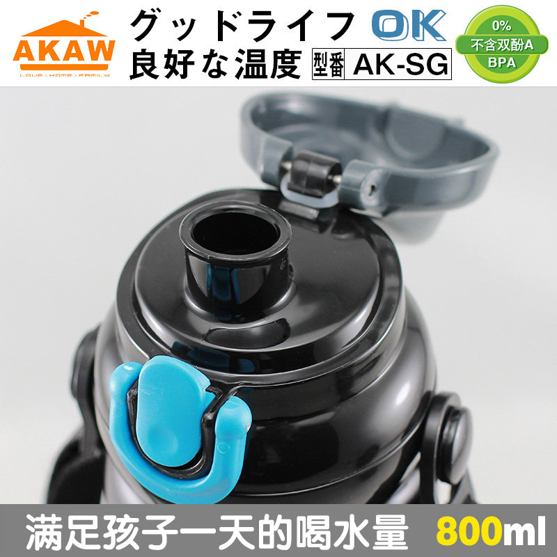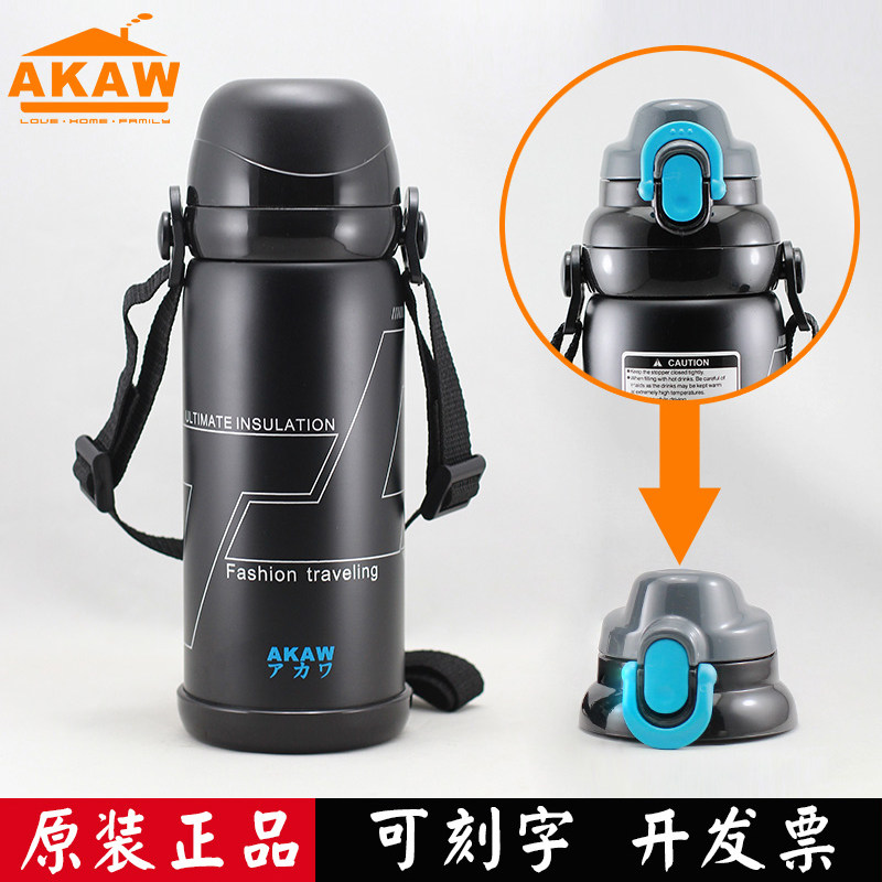 Japan AKAW children's thermos cup men large capacity stainless steel water cup direct drink belt anti-fall elementary school water bottle portable