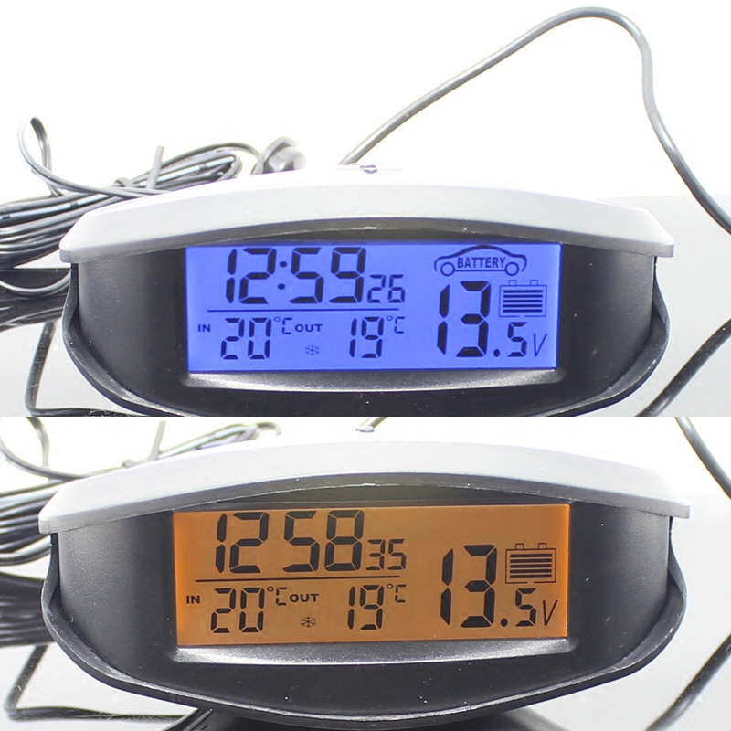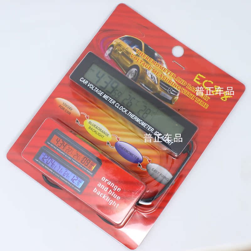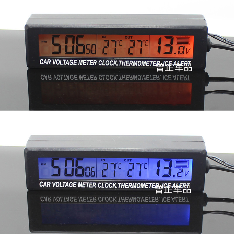 Vehicle voltmeter electronic clock internal and external double thermometer multifunctional vehicle instrument blue orange light All