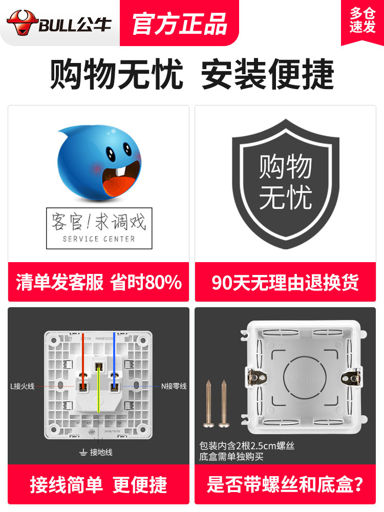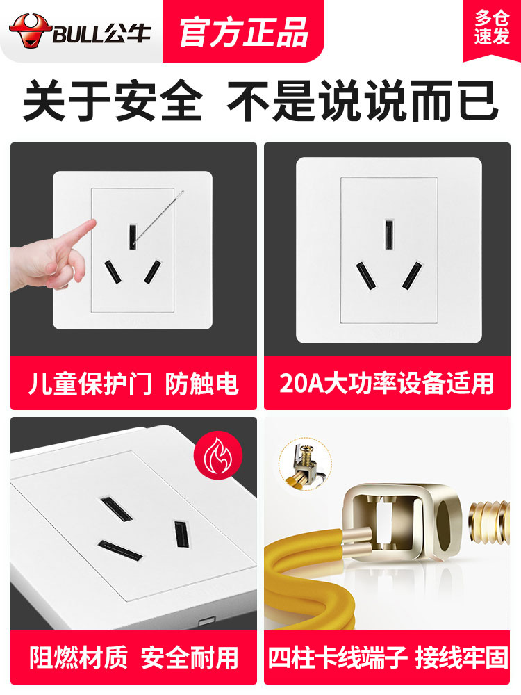 Bull 20A three-hole socket panel Home Tri-eye 86 Type wall 20 An high-power cabinet air conditioning special
