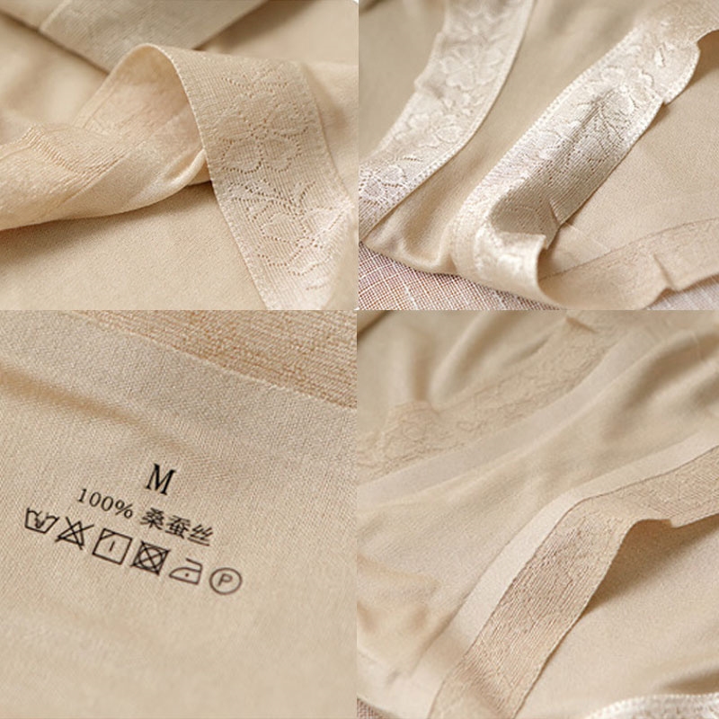 Lady Genuine Silk Briefs 42 Needle Hot Melt Mid Waist Sexy Antibacterial Triangle Pants One Piece Lace Bag Hip Shorts Safety Pants