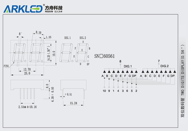 ARK SN660561B blue highlight digital display 0 56-inch two-digit common cathode LED digital tube
