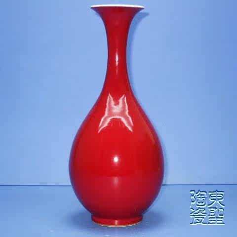 Large red jade pot spring porcelain bottle Jingdezhen High temperature color glazed antique vase Classical home pendulum decorated flower floral red bottle