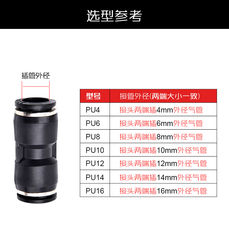 MPU straight-through quick plug Pneumatic straight-through quick joint Trachea joint PU-4 6 8 10 12 16