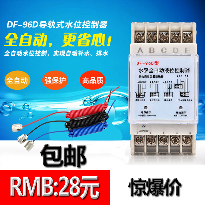 New Wang DF-96D Rail Water Level Switch Liquid Level Water Pump Controller 220V Water Level Controller Liquid Level Switch