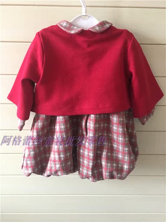 Child Clothing Korea Foreign Trade Girl Spring Autumn Dress TC Ladies Foreign Dress Cute Plaid Dress No Red Little Shawl