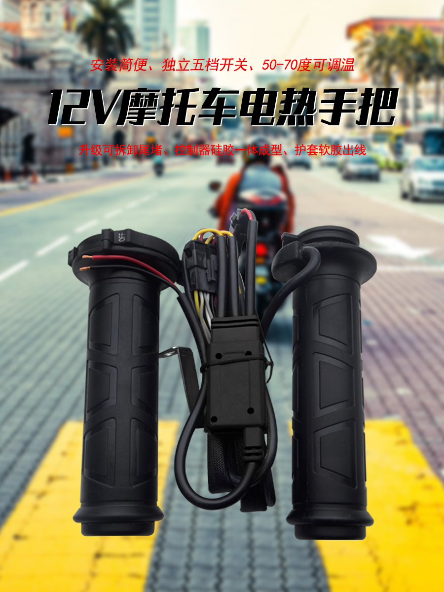 Motorcycle electric heating handle set scooter heating handle adjustable temperature glove electric heating handle 12V warm handle