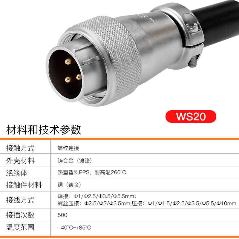 WS20-2 core plug square seat set WS20-2 core single male WS20-2 core single female seat WS20-3 core plug square seat set WS20
