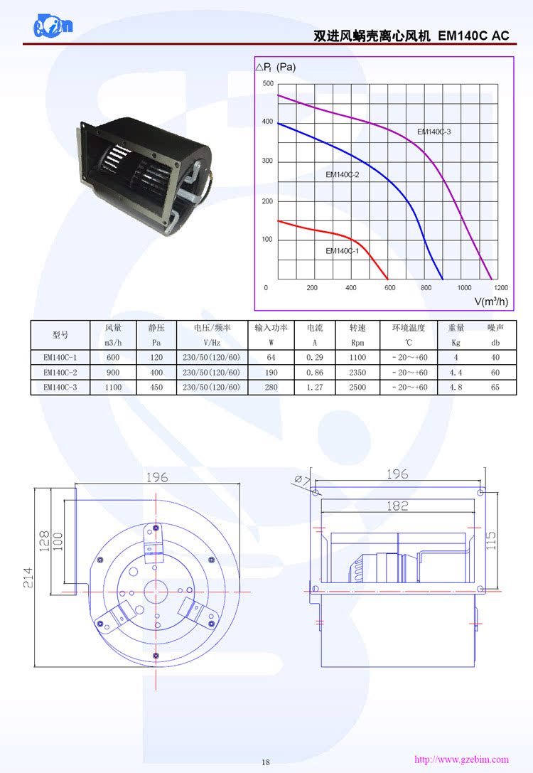 Ibim small double - inlet wind drum centrifugal fan low - noise EM140C external rotor motor powerful ventilator
