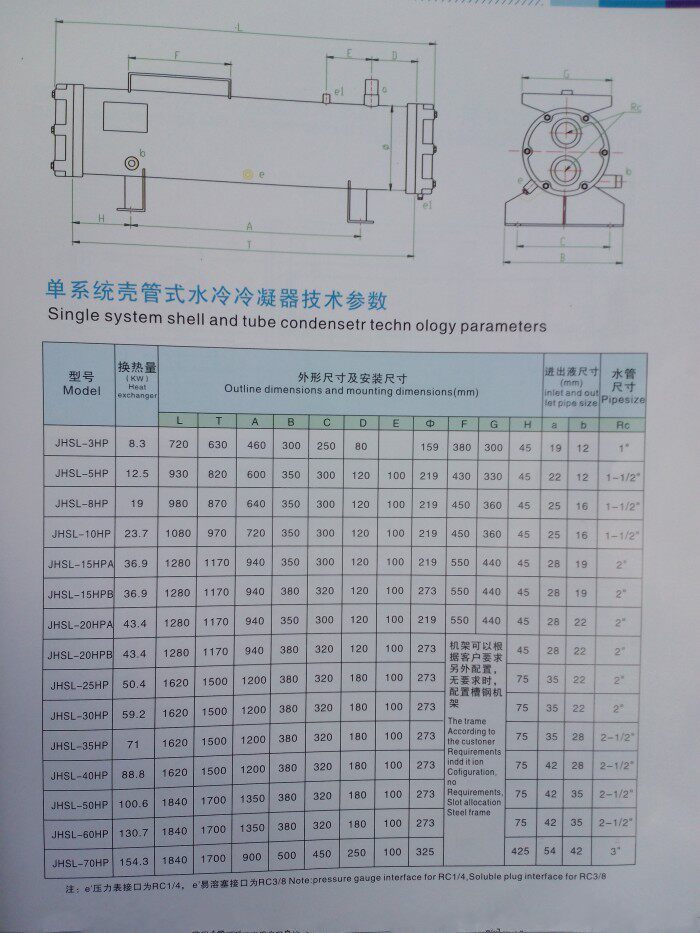 (Zhenmei Refrigeration) High Efficiency Water-cooled Condenser Bubble Condenser Shell and Tube Water-cooled Condenser 10HP
