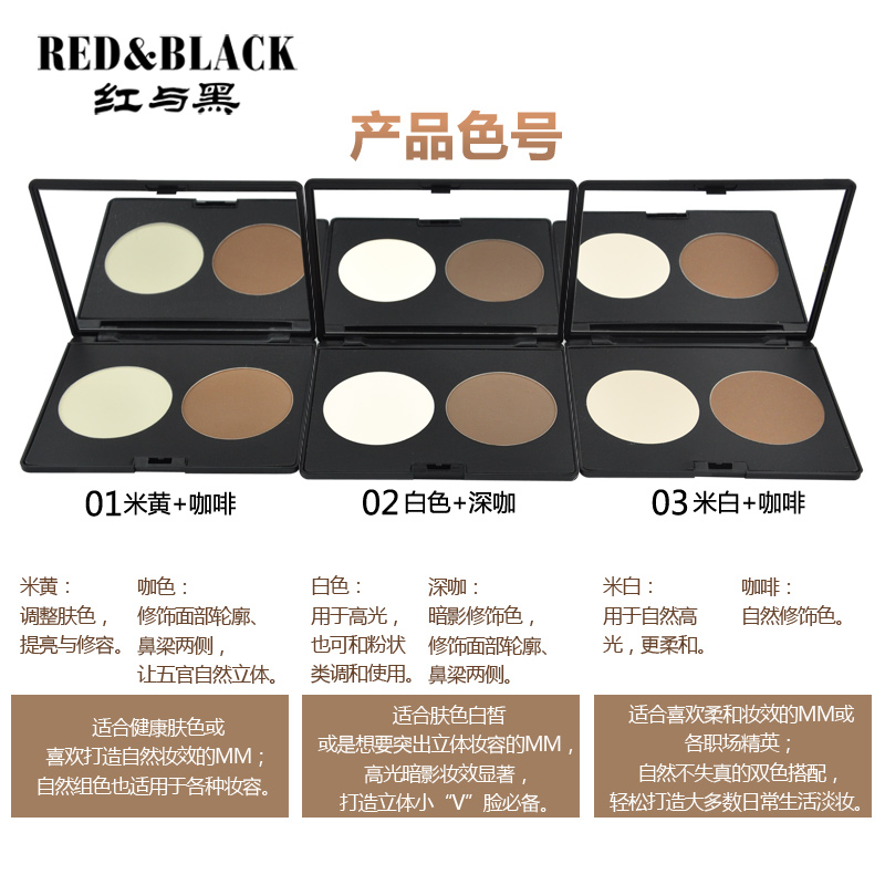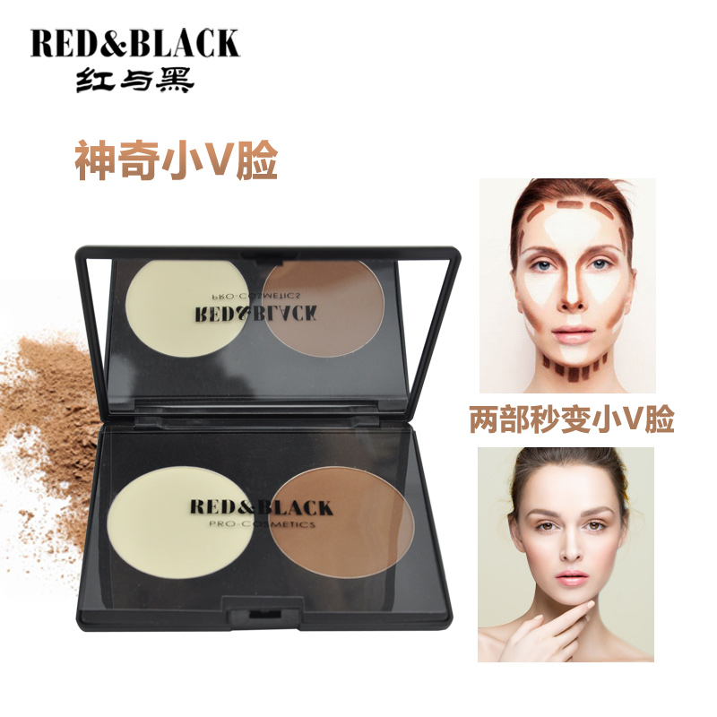 Red and black three-dimensional bicolor repair powder cake double repair pan side shadow brightening makeup artist dark shadow and high light integrated disc