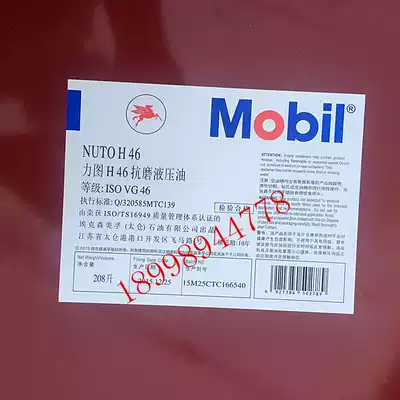 Mobil tries Nuto H 68 high-performance long-lasting ashless anti-wear hydraulic oil 18 liters