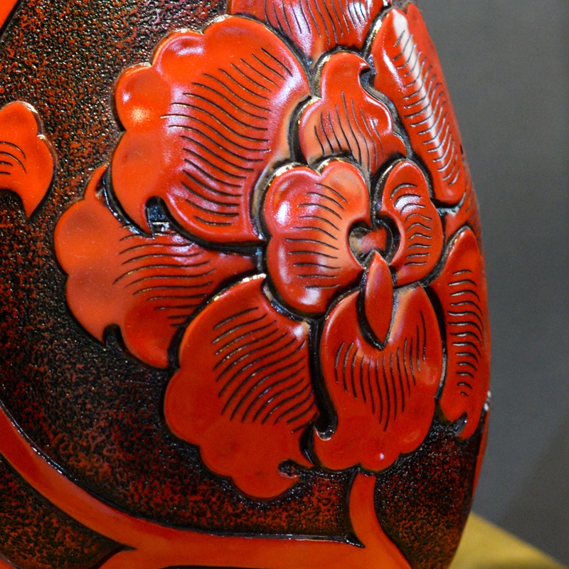 Chinese red lacquer vase neoclassical craft gift home decoration retro ornament flower twisted branch flower arrangement