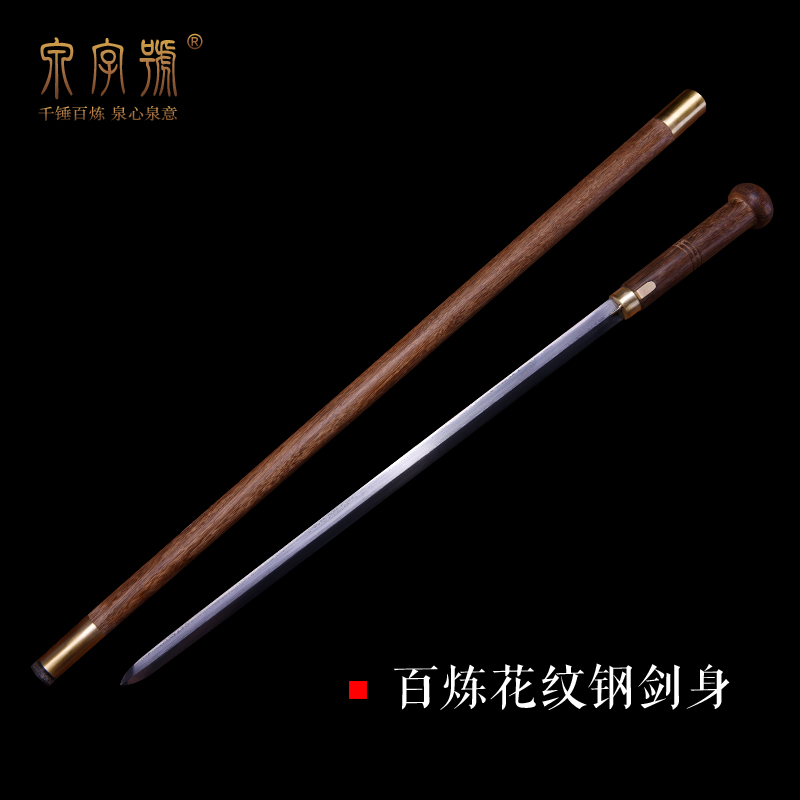 Longquan City Quancalligraphy Sword Chicken Wings Wood Flower Pattern Steel Cane Sword round Crutch Sword to send the elderly elders unopened