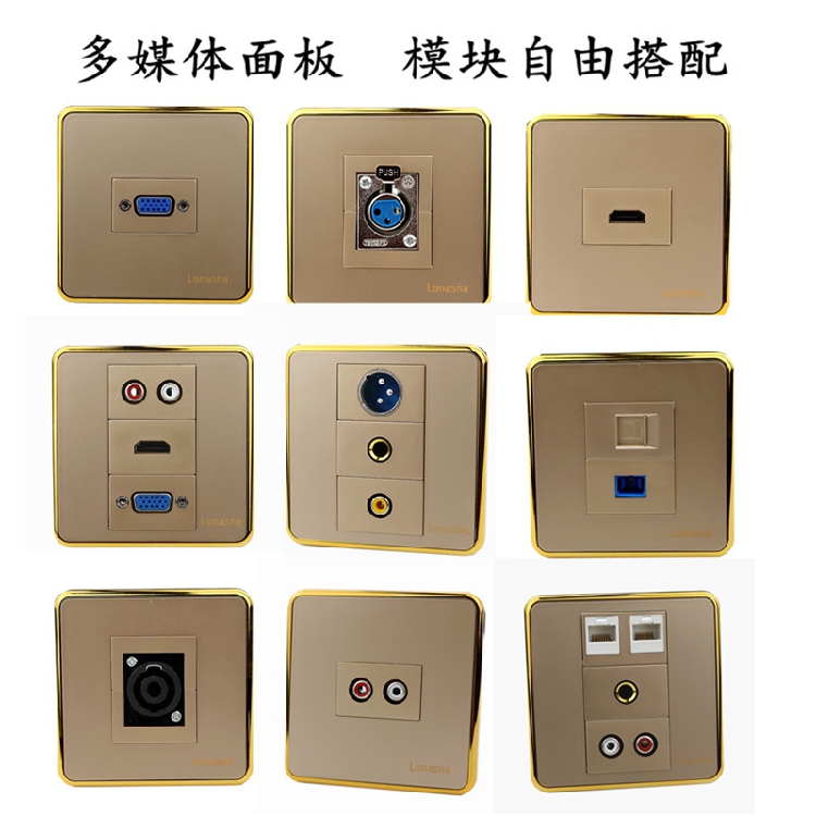 Lonasna Lai Hills Electrician Champagne Gold Frame Panel Voice phone RJ11 Internet RJ45 Fiber TV
