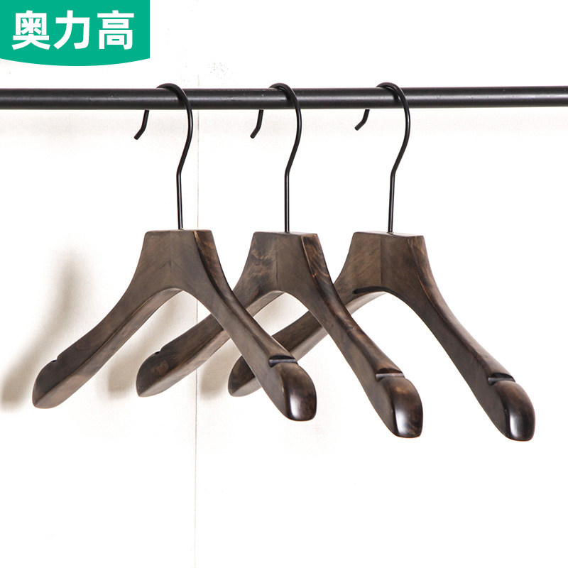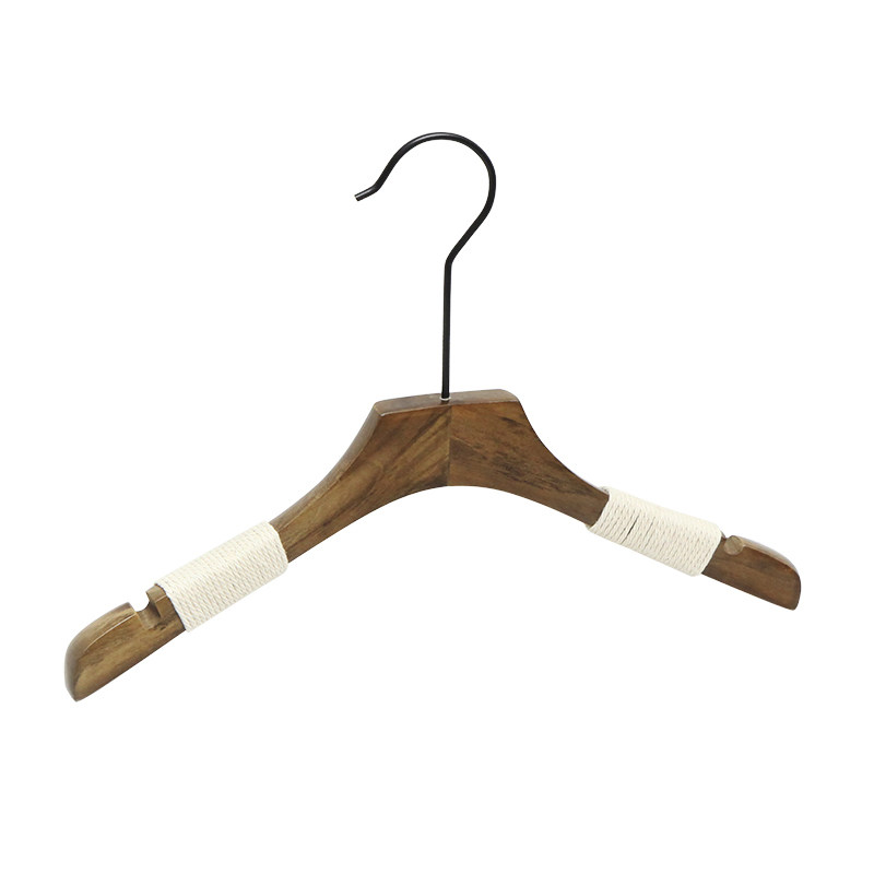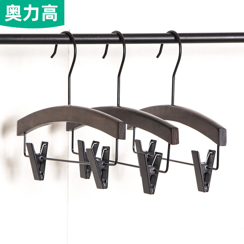 Clothing store clothing support wooden clothes rack solid wood pants clip non-slip clothes rack retro clothes rack hemp rope carved LOGO black clothes rack