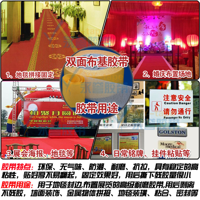 Double-sided cloth tape Strong high viscosity Wedding restaurant exhibition decorative wall carpet tape cloth-based double-sided tape