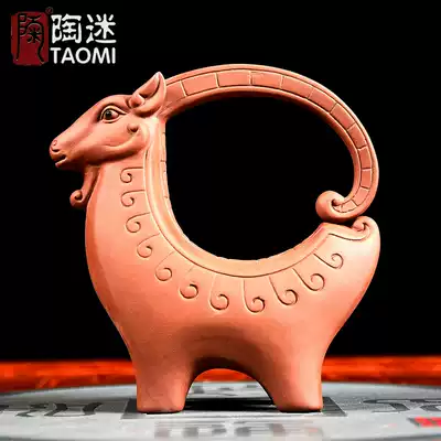 Pottery fan pottery clay tea pet pendulum sheep tea play ceramic crafts tea set supporting role cute sheep living room decoration can be raised