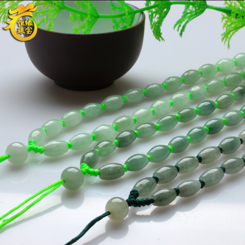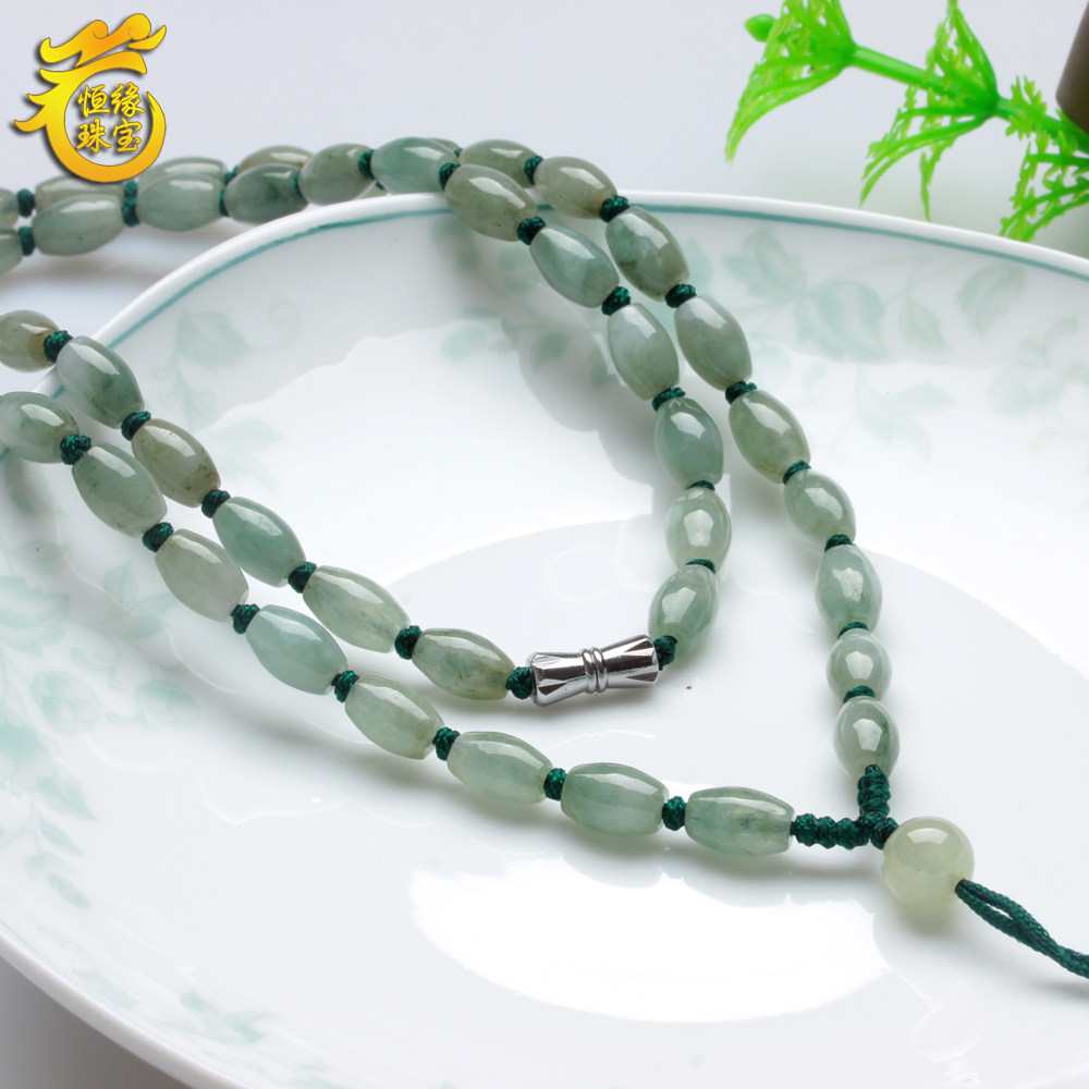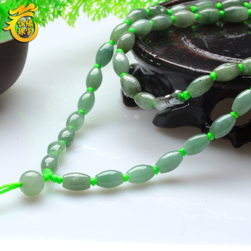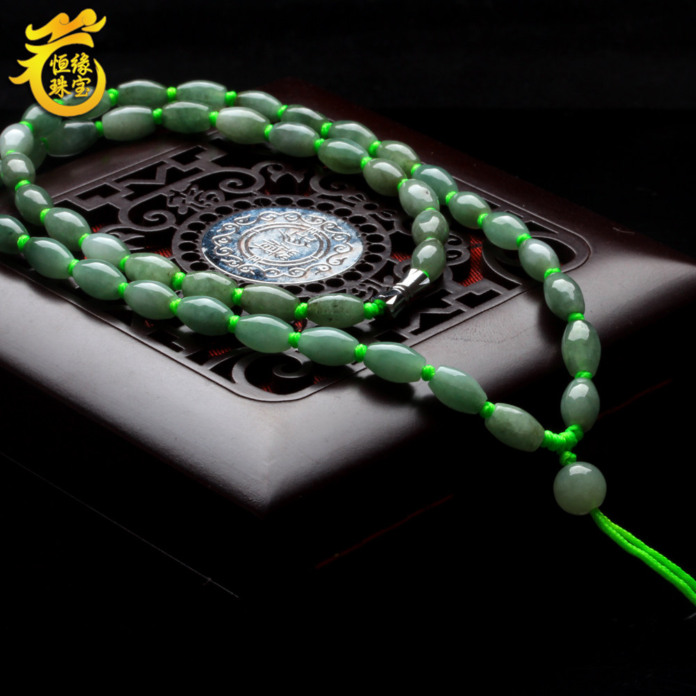 99 natural a goods emerald necklace Burmese turn jade bead jade bead necklace male and female models ice glutinous jade lanyard