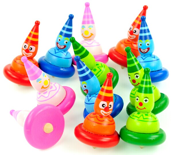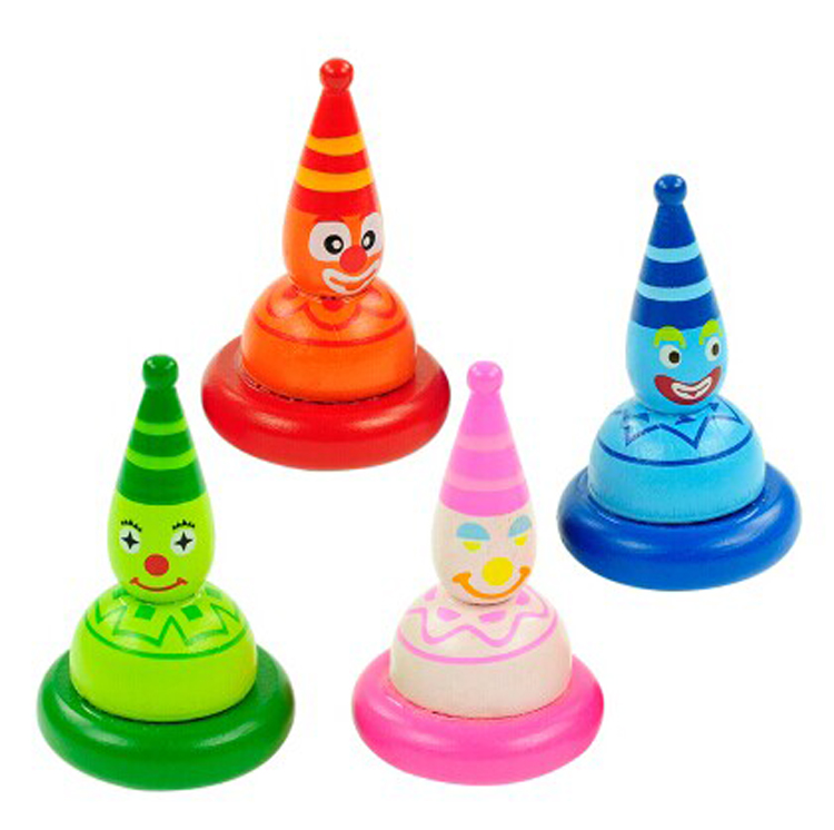 Wooden child clown top 1-2-3-year-old cartoon spinning top baby competition Puzzle Early Teaching Aids Toy
