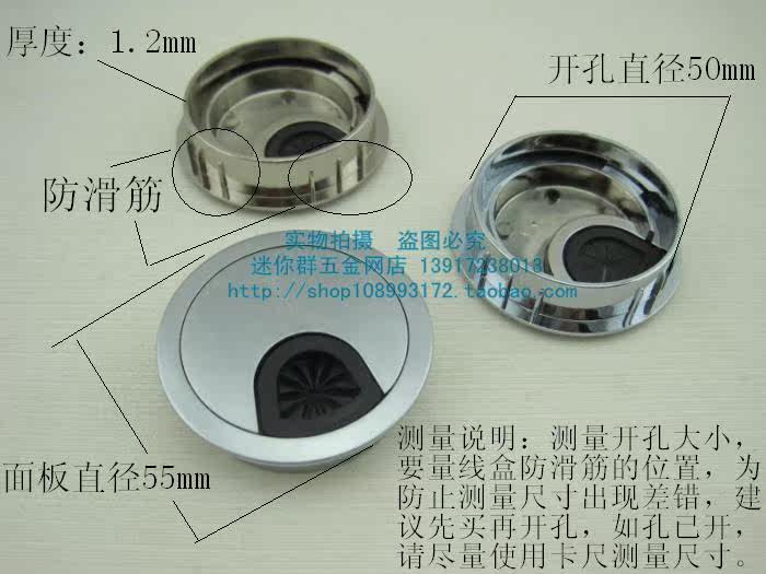 Thickened round zinc alloy wire box threading hole desk wire hole cover computer table wiring box opening 50mm