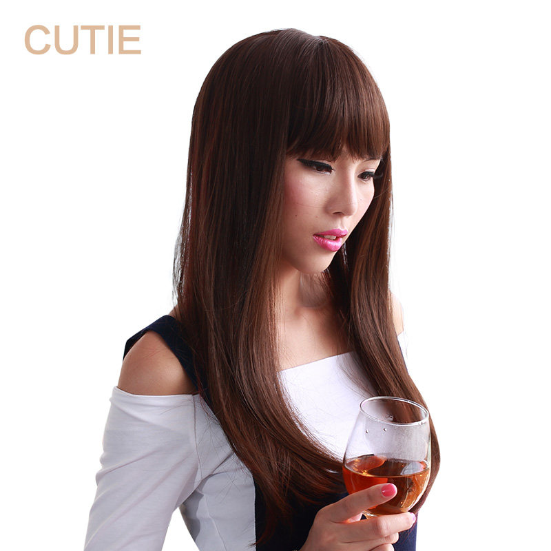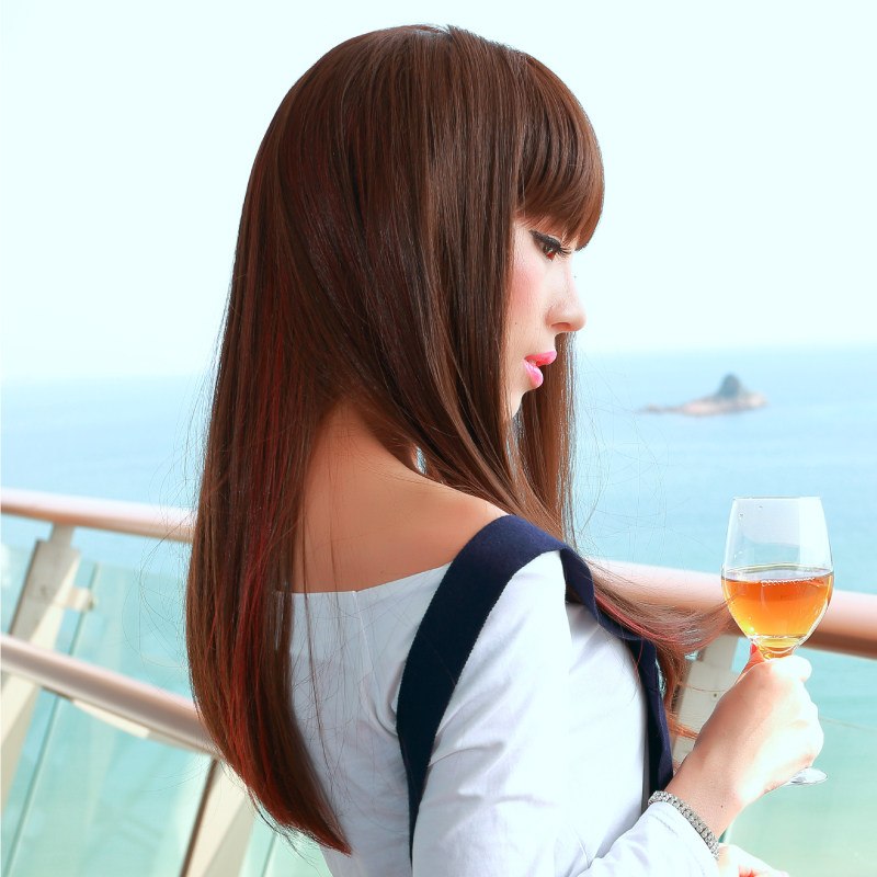 New products Prettiness wig Female color long straight hair wig set Female long hair wig Qi Liuhai fluffy face repair