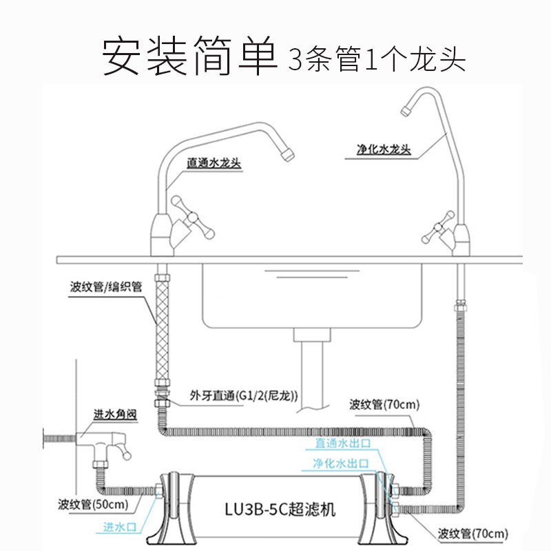 Lisheng water purifier household direct drinking machine kitchen large flow ultrafiltration machine tap water pipe filter purifier