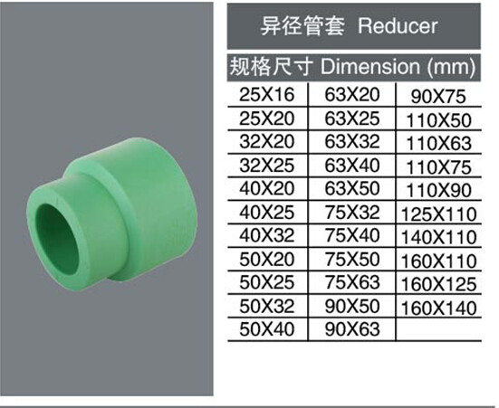 High quality internal wire antibacterial tube piece hot and cold water 125mm 140160 PPR heterodiameter tube sleeve size head