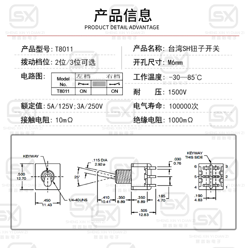 Imported Silver Contact Point Taiwan SH Switch Rocker Arm Switch T8013-SEBQ Button Switch 3 Foot 2 Gear