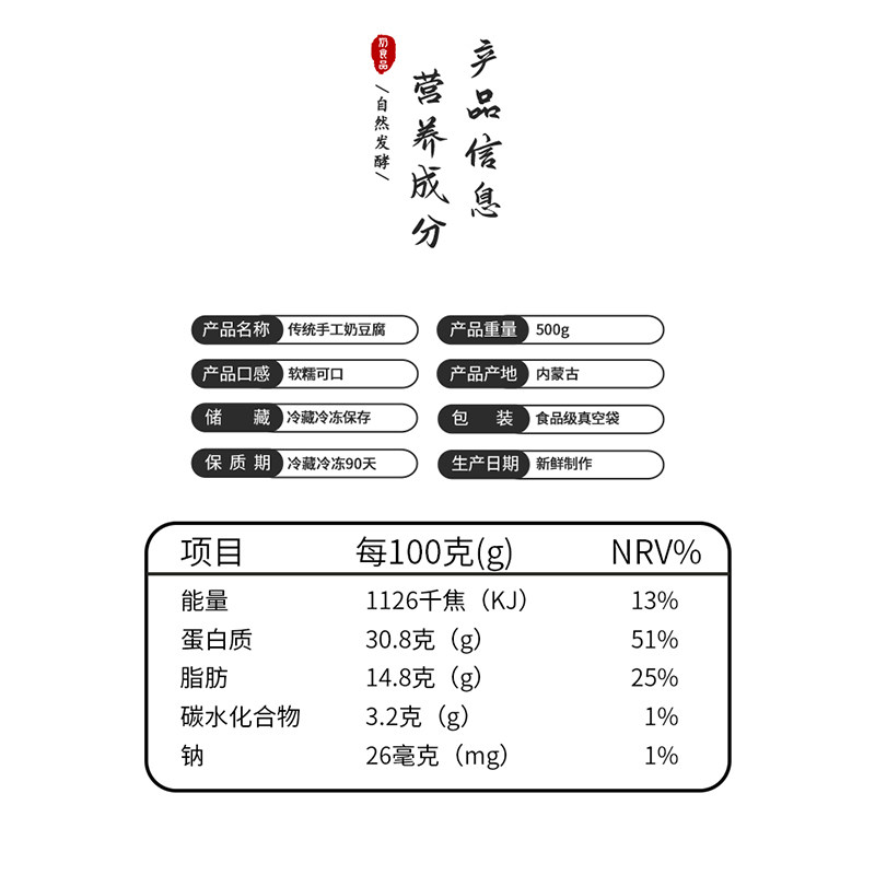Inner Mongolia Tproduction Sirim Guo Le Alliance Zheng Blue Flag No cane sugar Manual homemade milk Tofu 500g to give milk tea