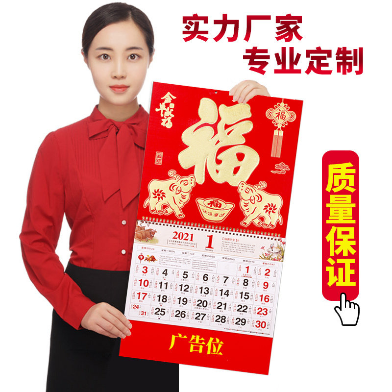 2021 Year of the Ox calendar custom company insurance gift calendar calendar large blessing word calendar custom creative positive six open gold foil household Chinese style 2020 advertising tear calendar Yellow calendar tag