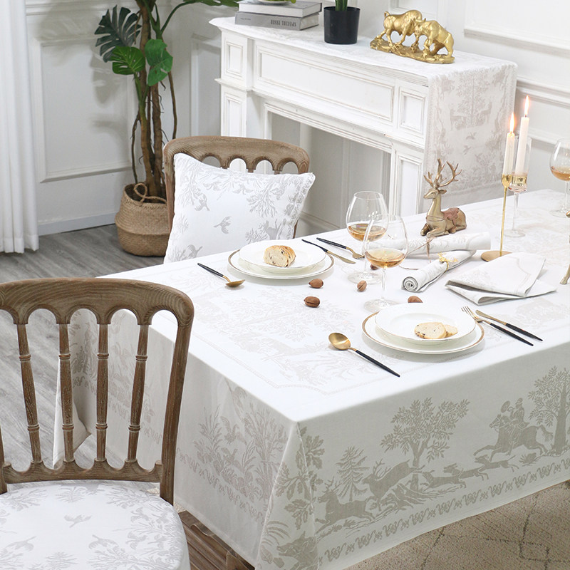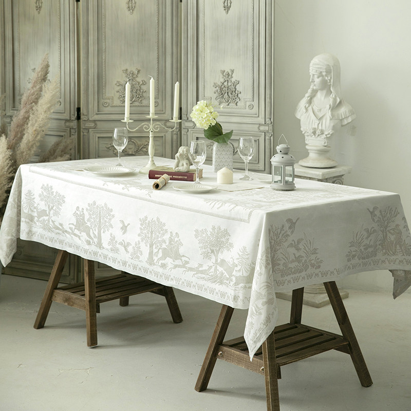 European tablecloth high-grade white linen rectangular western food table linen American modern luxury tea table cloth tablecloth