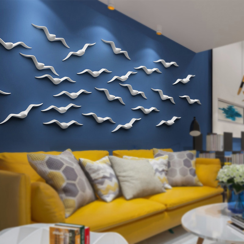 Creative ceramic seagull wall decoration wall decoration Nordic TV background wall bird wall decoration stereo 3d pendant