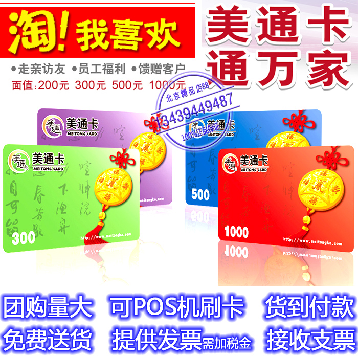 Beauty Pass Card 200,300 yuan, 500 yuan, 1,000 yuan