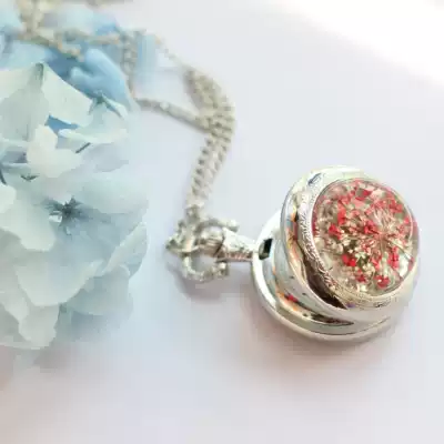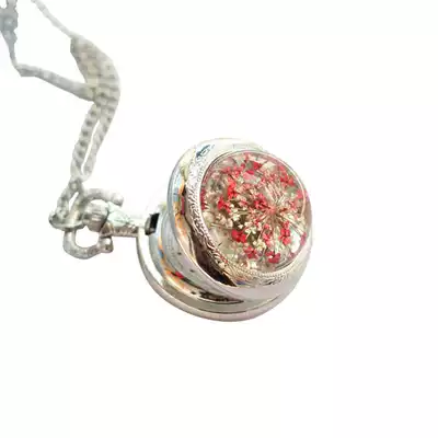 Gypsophila real flower specimen pocket watch flip necklace sweater refining girlfriends custom photos Valentine's Day gift for girlfriend