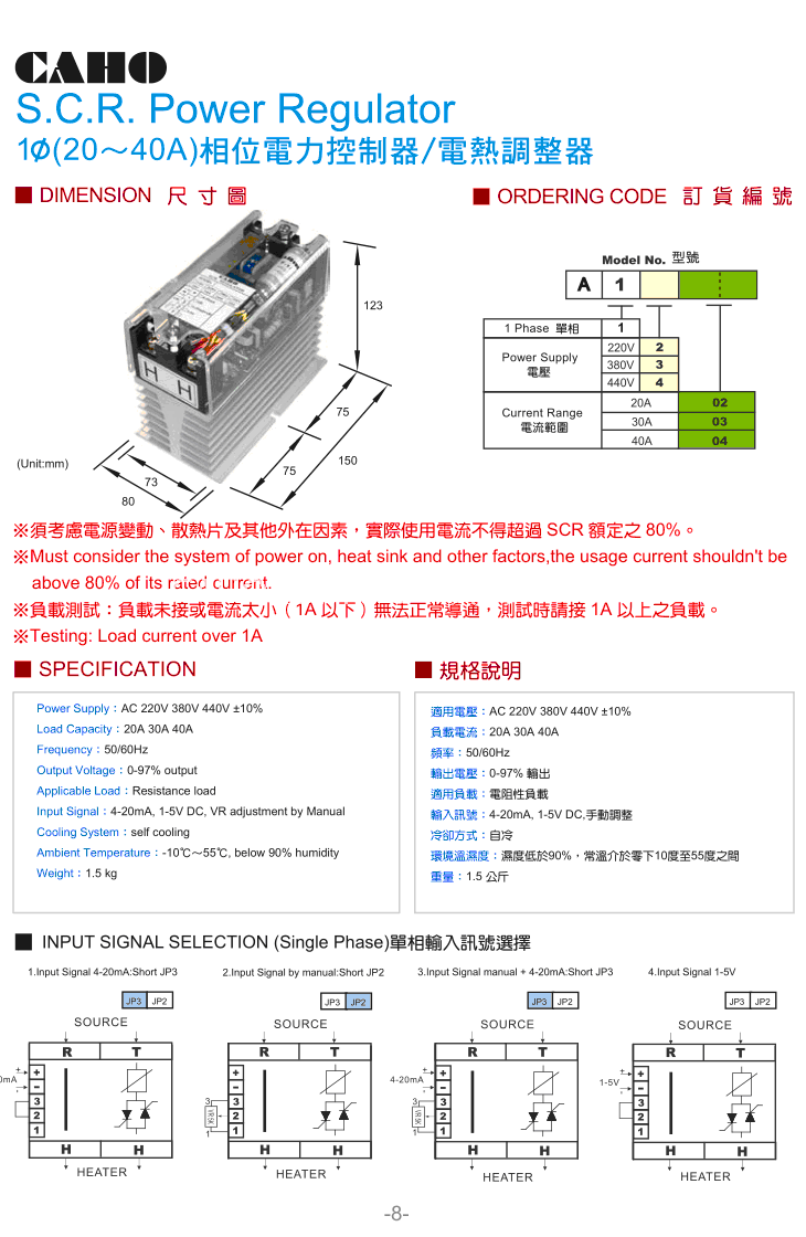 Original Taiwan Xuanrong CAHO A1204 A1304 single-phase power regulator SCR 40A