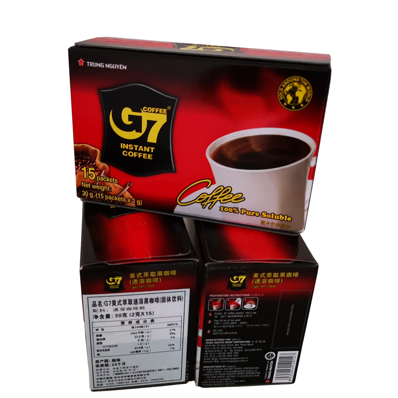 Imported Vietnam G7 Black coffee Zhongyuan Instant pure black coffee Powder 30g 15 packs 24 boxes Extra strong sucrose-free