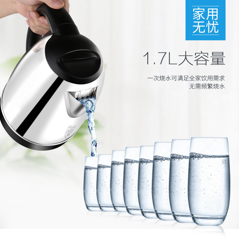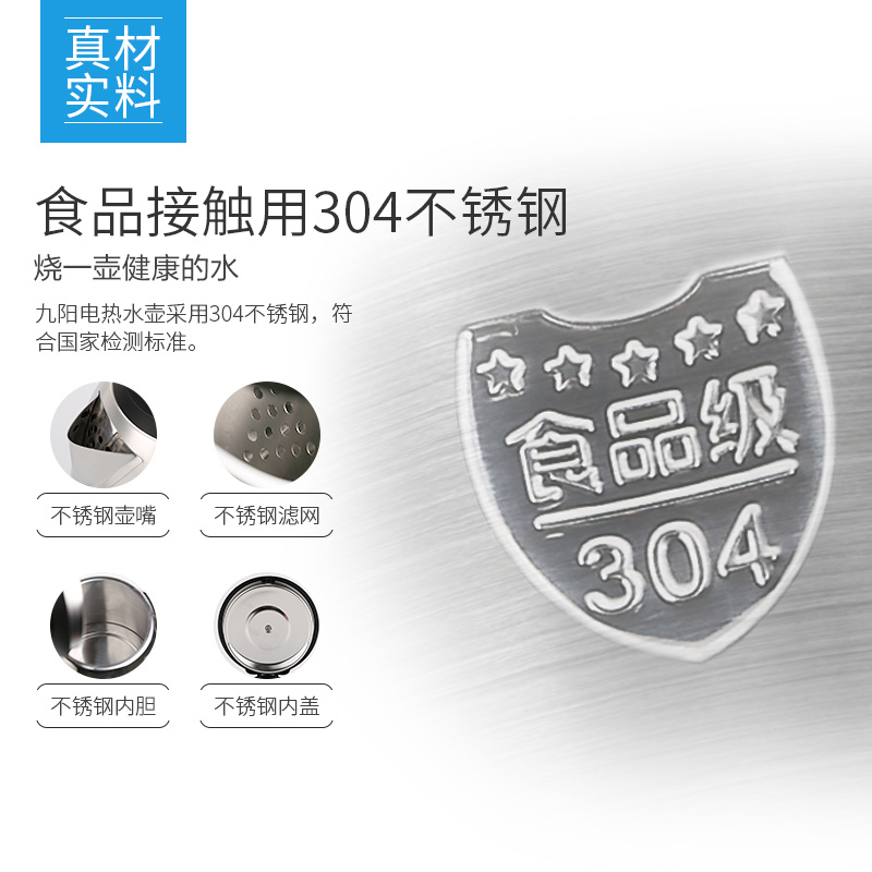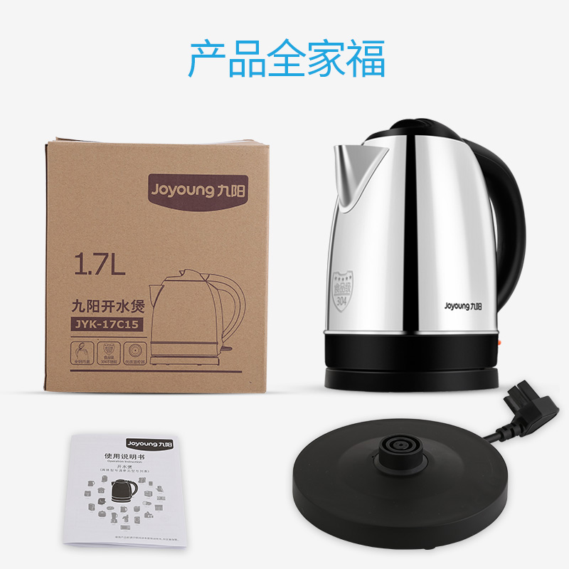 Jiuyang electric kettle household kettle water boiler 304 stainless steel automatic power off 1.7L large capacity