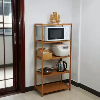 Kitchen shelf Floor-to-ceiling microwave oven rack Desktop kitchen supplies storage shelf Oven rack Pot rack Solid wood bamboo